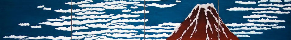 Mt. Fuji is not only the highest mountain in Japan, but it has been depicted by many artists in different style for years. This screen features magnificient shape of the volucano moutanin in sun shine with clear blue sky and wihte cloud. Original artwork was made in woodblock print by Katsushika Hokusai (1760 - 1849).