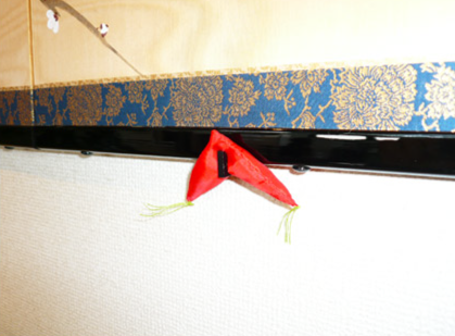 Figure I. Hanger Type II set. The long brackets are affixed to the screen on the outermost folds, while the small bracket snaps onto the screen at the center fold to hold the screen straight. For 91 cm / 3 ft screens.